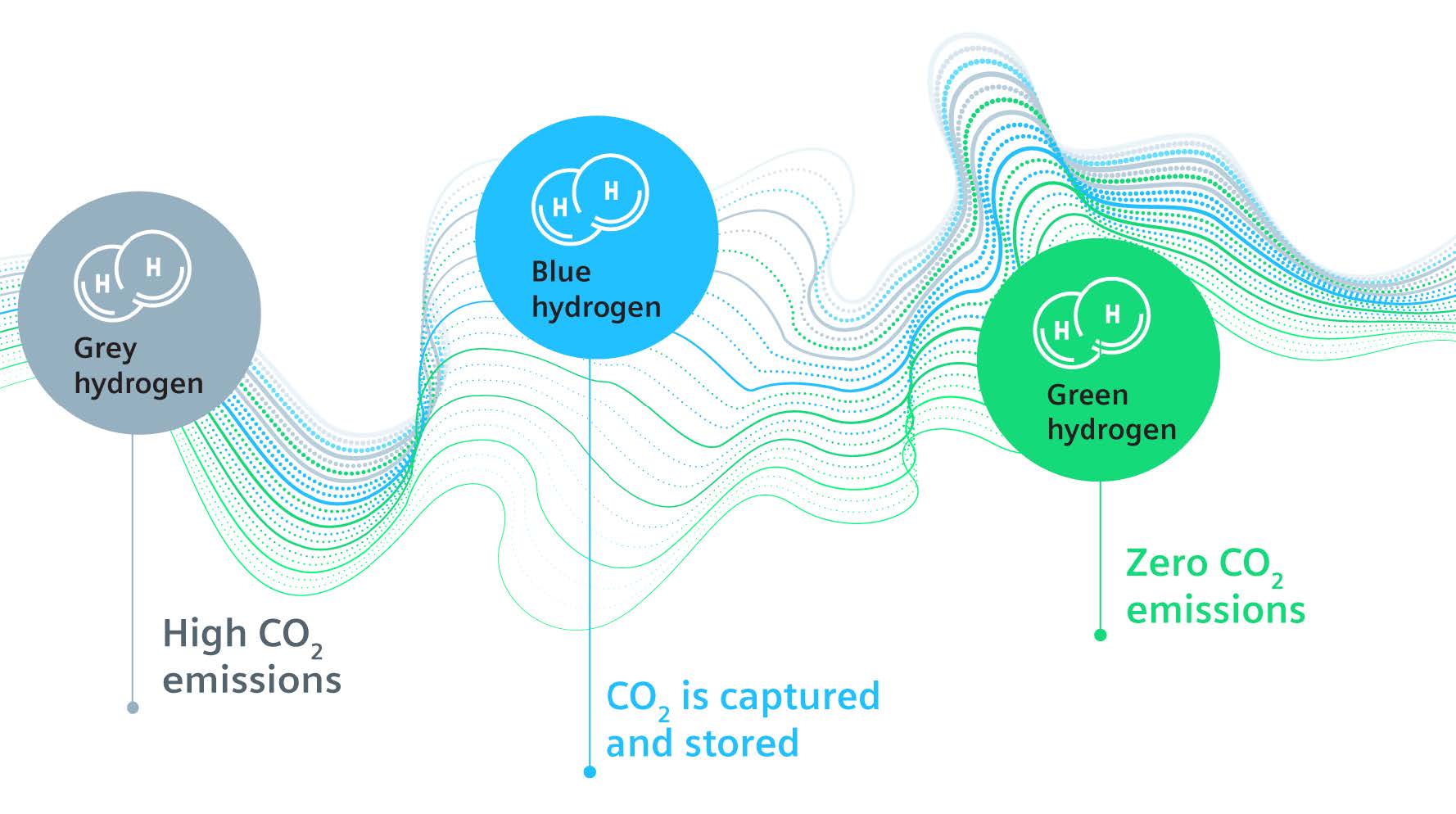 Today, however, nearly all synthetic hydrogen is produced with fossil fuels. Three main methods of sourcing hydrogen can be distinguished: grey, blue, and green hydrogen.
